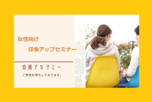 好印象アップセミナー 本セミナーではあなたの印象アップの仕方を中心にレクチャーをいたします。あなたはお相手からどのとうな印象で見られていると思いますか?もしかしたら、自分自身のことがよくわからない…、という方もいらっしゃるかと思います。人の…